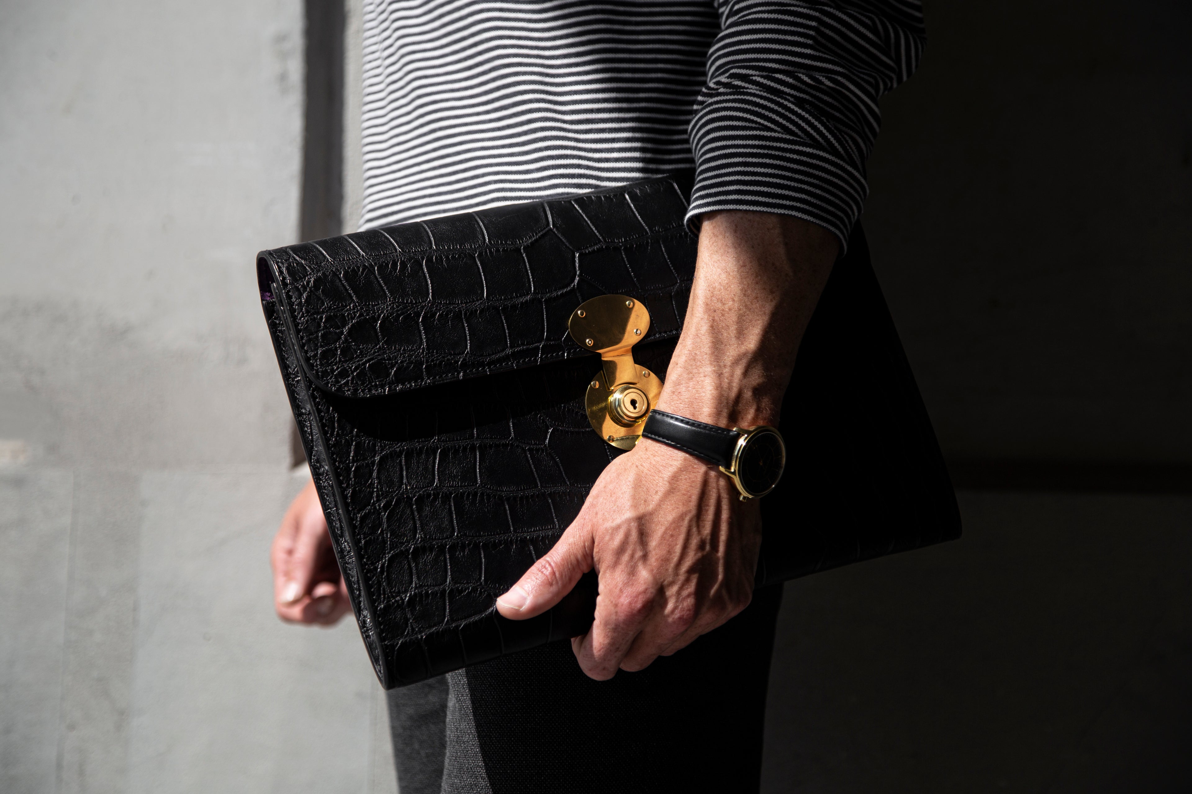 ‘My time at Dunhill was extremely valuable to me as a maker as the workshop Dunhill has in London solely for their apex products; they specialise in making their most prestigious items such as top frame briefcases, lid over briefcases and bespoke pieces using the highest quality British leathers, including Bakers bridal hides and traditional veg tan hides. I was extremely lucky to have been able to work alongside and learn from the few senior crafts people that worked there who had been in the industry for many decades and who between them had worked as crafts people for the likes of Hermes, Yves St Laurent, Tanner Kroul and many more. Their skills were second to none and they were extremely generous with sharing their knowledge’.