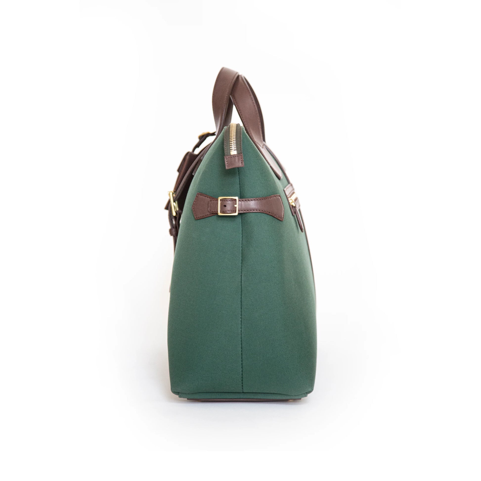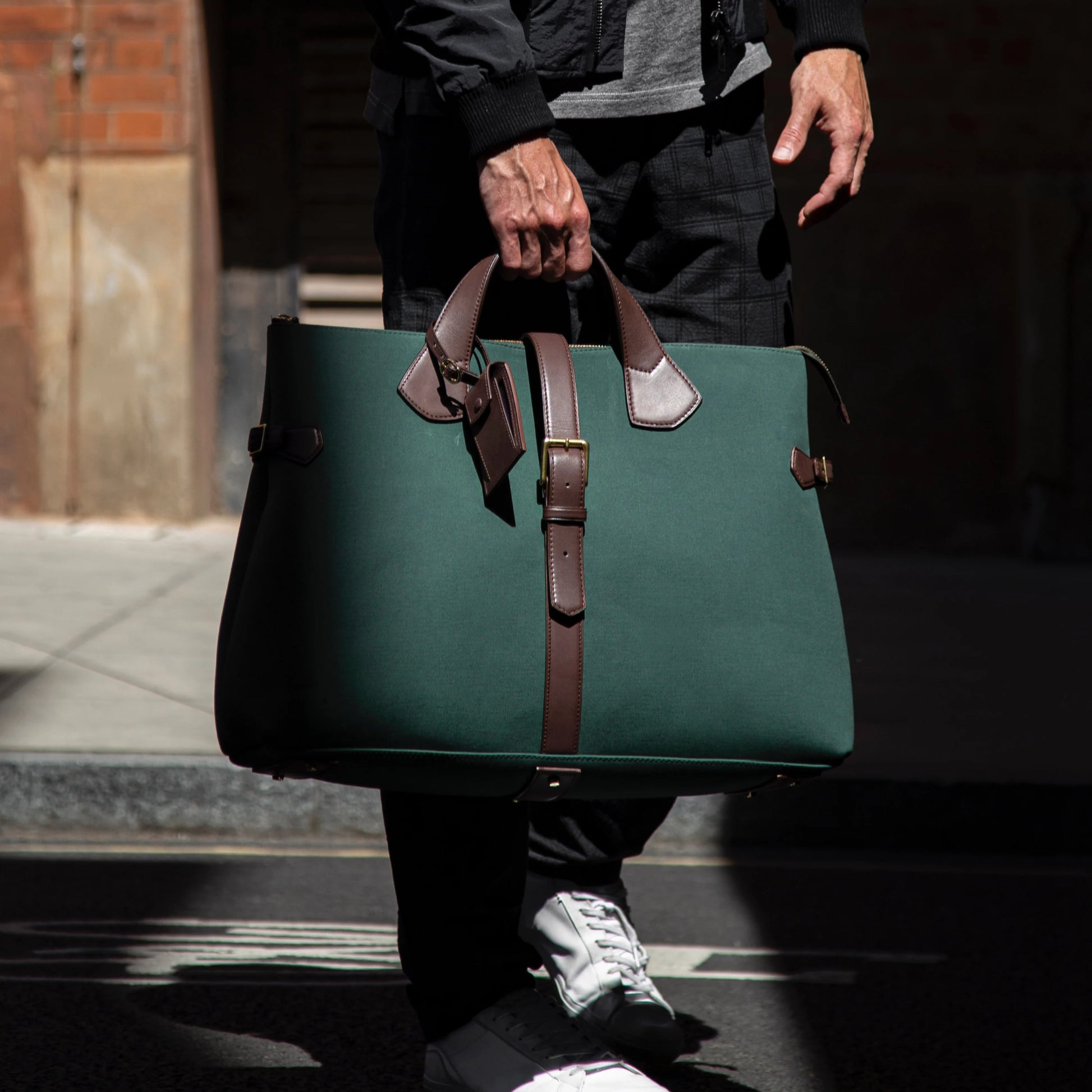 Crafted in a combination of Scottish canvas and smooth American buffalo hide, the Blofeld offers a weekends worth of carrying space in a lightweight and streamlined holdall.